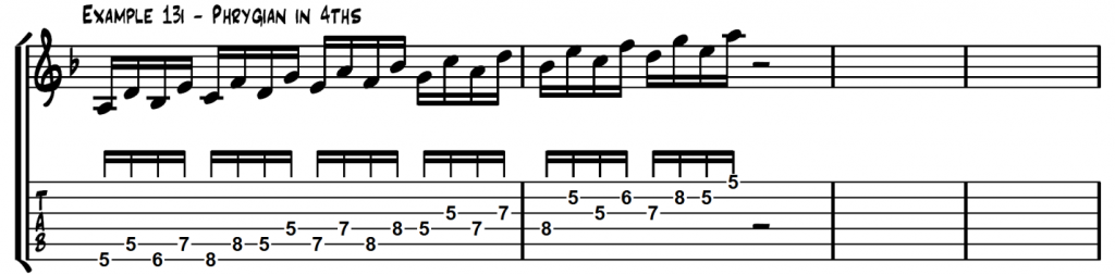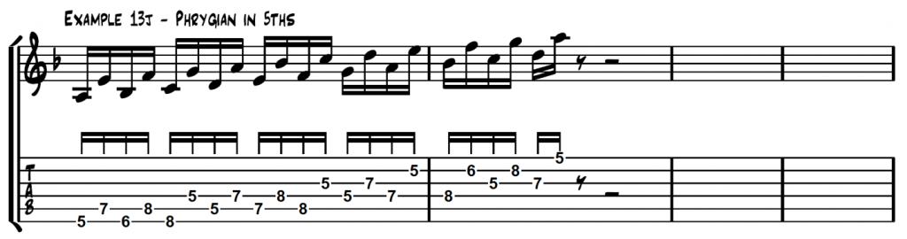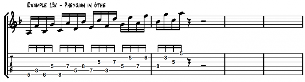 Meine erste Wahl, um im phrygischen Modus zu spielen, sind normalerweise Terzen und Sechstel, aber wie immer verbringe Zeit damit, die Ideen zu üben, deren Klang dir am besten gefällt.